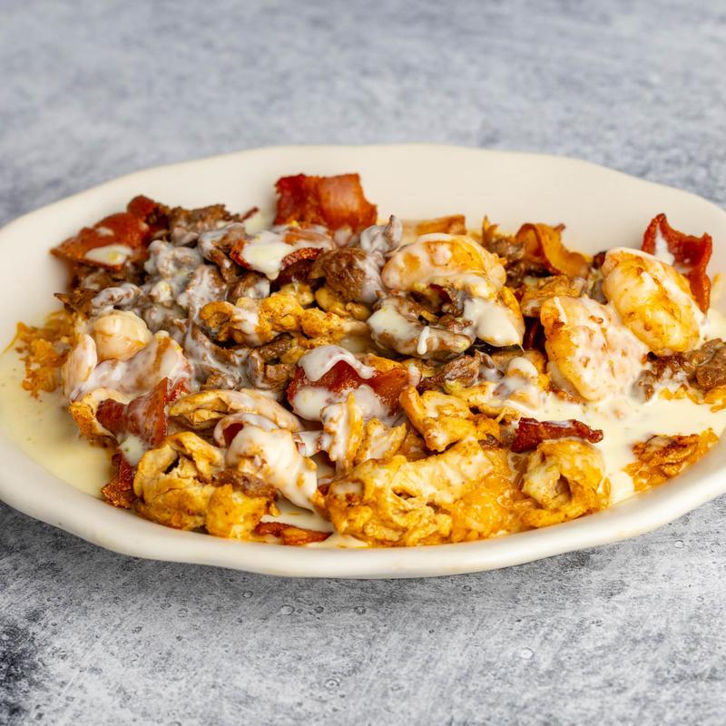 Add Shrimp or Scallops to any entree +$3.00 | We charge +$4.00 if you want to replace or add cheese dip on your meal.